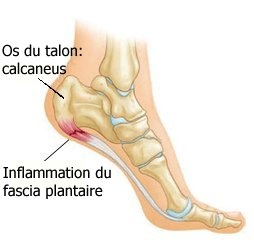 Symptômes Typiquement, le pire moment de la journée sera les premiers pas en sortant du lit ou après avoir été assis durant un certain temps. La douleur est habituellement vive et se situe sous le talon ainsi que le long de l’arche plantaire; elle est souvent moindre durant la course à pied, une fois les structures réchauffées.
