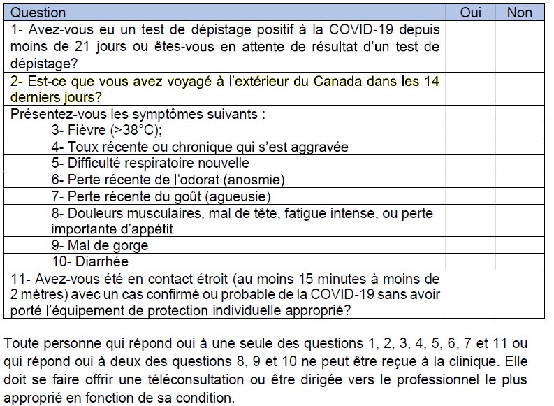 Triage téléphonique en vigueur: