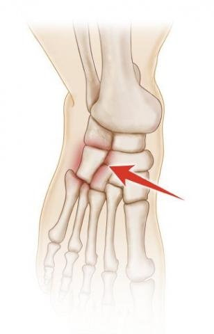 -Douleurs et inflammation : directement à la région du cuboïde et sous le pied; l’œdème (enflure) est parfois présent. Le test du saut (sauter sur une jambe) reproduit habituellement les douleurs.