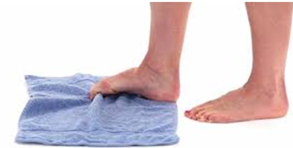 Placez-vous en position assise, pieds séparés à la largeur du bassin. Étendez une serviette sur le sol devant vous et posez la plante des pieds sur la serviette et les talons sur le sol. En remuant les orteils pour servir de crochets, essayez de tirer la serviette vers vous.
